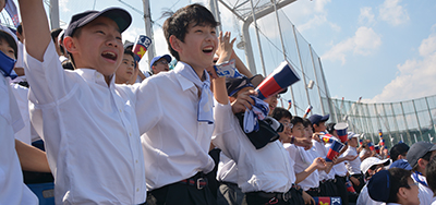 学年別クラス対抗で行います。 事前の予行練習はなし、ぶっつけ本番でクラスごとに優勝を競います。男子校ならではの盛り上がりを見せます。