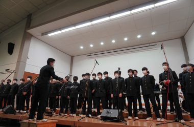 3年生はクラス演奏を行います。音楽会後、全校生徒の投票により優勝を決定します。優勝者・グループにはメダルが授与されます。